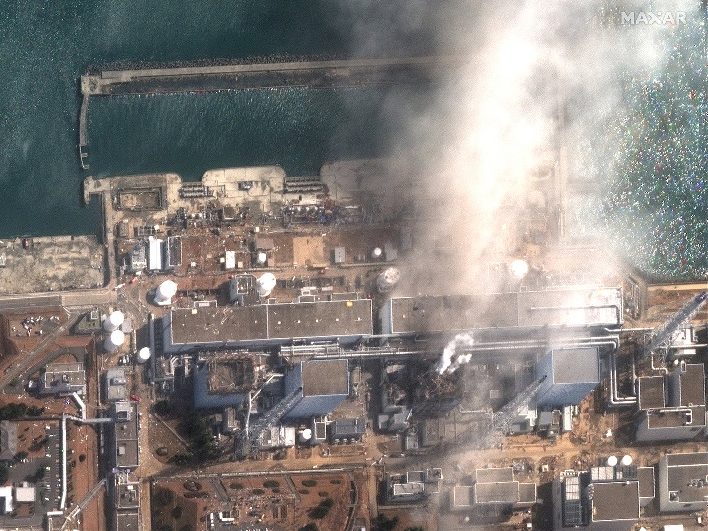 وتُظهر الصورة الأولى محطة توليد الكهرباء قبل دقيقة واحدة من انفجار المفاعل الثاني في 14 مارس 2011. بينما تكشف الصورة الثانية، التي التقطها قمر WorldView-2 بعد أربع دقائق من الصورة الأولى، الضرر الناجم عن المفاعل الثاني.