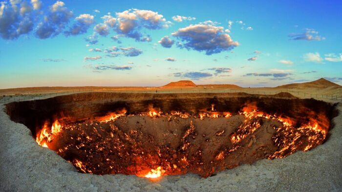 أشهر هذه الفوهات تُعرف باسم "دارفازا" أو البوابة، وهي حفرة يشتعل فيها الغاز، يبلغ قطرها نحو 70 مترا وعمقها 30 مترا. تشكلت نتيجة خطأ بشري عام 1971 أثناء حفر بئر للغاز، حيث انهارت منصة الحفر وفتحت الحفرة، متصاعدة منها غازات الميثان. لإيجاد حل، قرر المهندسون إشعال الغاز، وظلت النيران مشتعلة منذ أكثر من أربعة عقود، لتُعرف باسم "بوابة الجحيم"، وتظهر ليلا وكأن الأرض تتوهج من الداخل.
