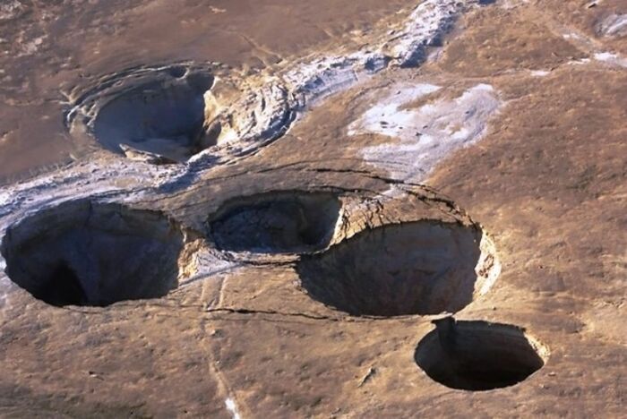 تبدو هذه الفوهات من الأعلى كآثار اصطدامات هائلة خلفها كائن غير مرئي: فوهات سوداء ضخمة تمتد مئات الأمتار في العمق. يطلق السكان المحليون عليها اسم "الحفر"، بينما يقر الجيولوجيون بأنها من أكثر الأماكن غموضا على كوكب الأرض.