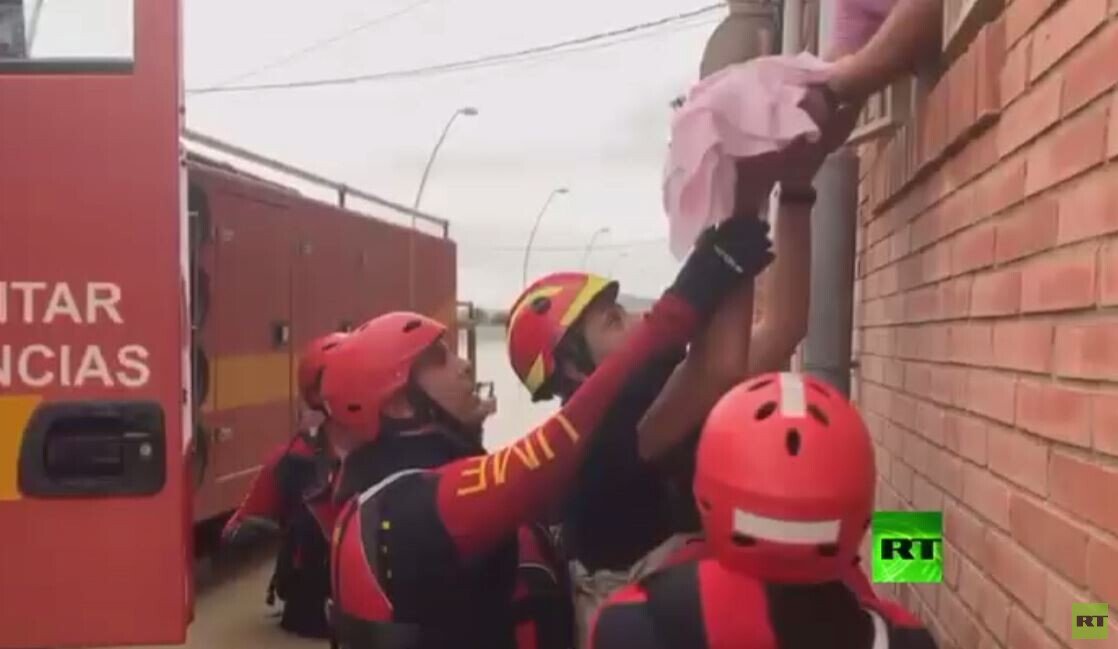 انقاذ رضيع من مبنى حاصرته مياه الفيضانات بإسبانيا