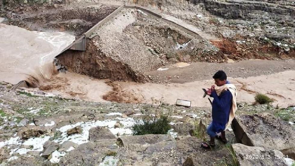 انهار سد الرونة بمنطقة حبابة في محافظة عمران باليمن نتيجة الأمطار الغزيرة والمستمرة.
