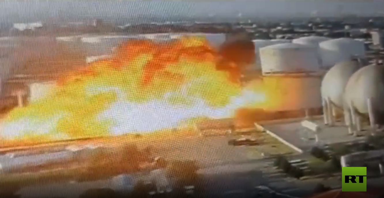 وأشار شخص يسمع صوته في مقطع الفيديو إلى أنه "لو انفجرت خزانات الغاز المسال، لأحدثت تدميرا بقوة زلزال ثمانية ريختر".