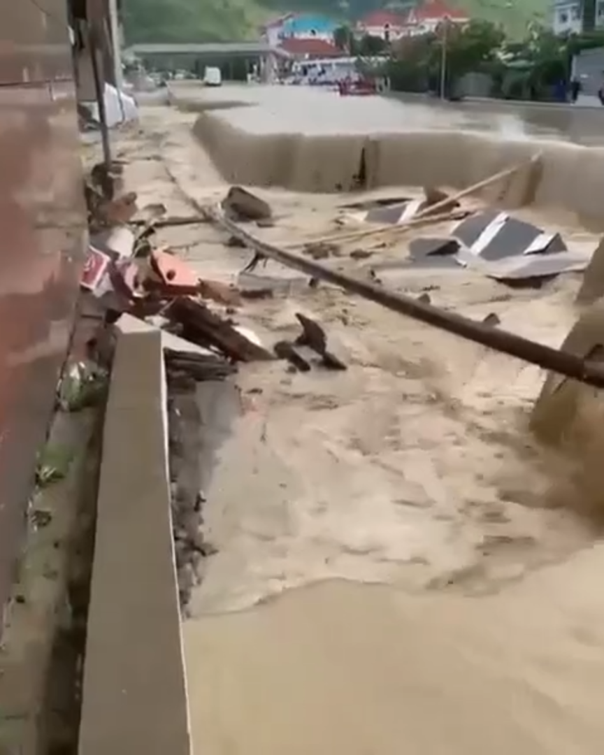 أظهرت مشاهد مصورة سيول الفيضانات وهي تتدفق متجولة في شوارع قرية ليرمونتوفو في منطقة كوبان بإقليم كراسنودار، جنوبي غرب روسيا.