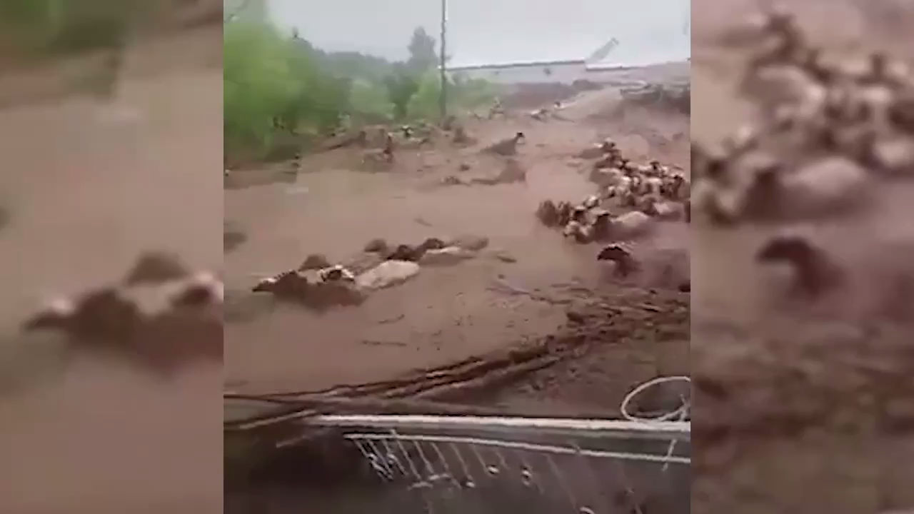 ونشرت بعض وسائل الإعلام لقطات فيديو، ظهرت فيها مياه السيول وهي تجرف كل ما في طريقها.