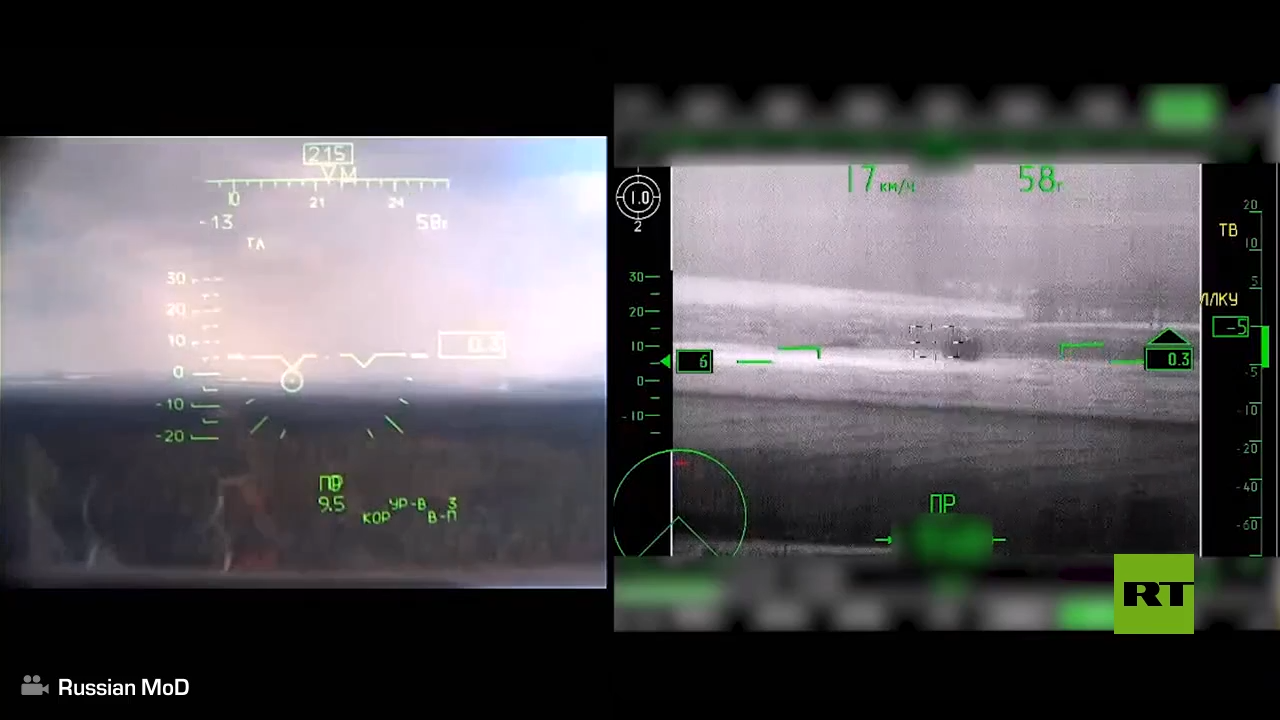نشرت وزارة الدفاع الروسية لقطات لمروحية "كا-52" وهي تقوم بقصف دبابات أوكرانية بمنظومة "فيخر" للصواريخ المضادة للدبابات.