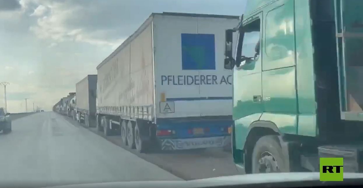 رصدت كاميرا RT قافلة للتحالف الدولي محملة بمعدات عسكرية وسواتر إسمنتية وصهاريج نفط لدى وصولها إلى القامشلي قادمة من إقليم كردستان العراق متجهة لقواعد عسكرية أمريكية شرق الفرات.