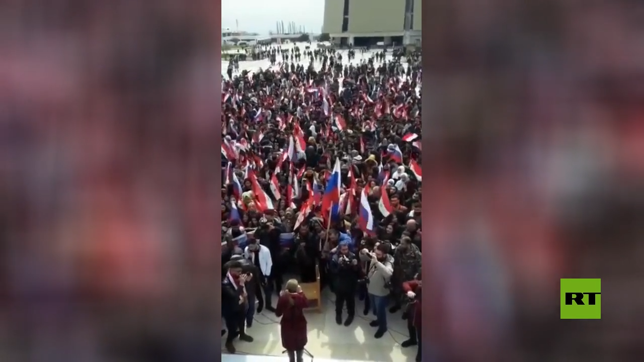 نظم طلاب وأساتذة جامعة تشرين باللاذقية وقفة تضامنية دعما لروسيا وشعبها حيث أعربوا عن رفضهم للسياسة الأمريكية والغربية الهادفة إلى تقويض أمن روسيا واستقرارها.