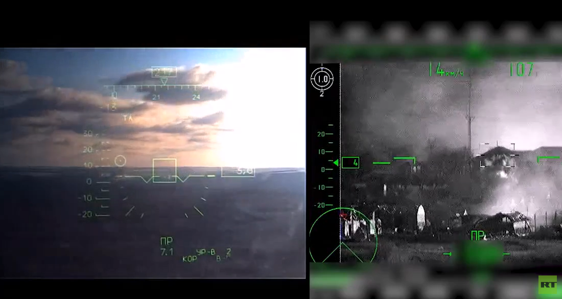نشرت وزارة الدفاع الروسية لقطات تظهر عمل المروحيات الضاربة خلال العلمية العسكرية في أوكرانيا