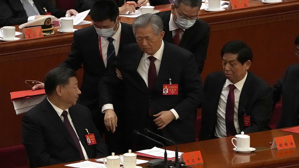 تداولت وسائل إعلام مقطع فيديو يظهر لحظة اضطرار الرئيس الصيني السابق هو جينتاو، وهو يجلس بجوار الرئيس الحالي شي جين بينغ خلال المؤتمر الـ20 للحزب الشيوعي، إلى مغادرة القاعة "مبكرا".