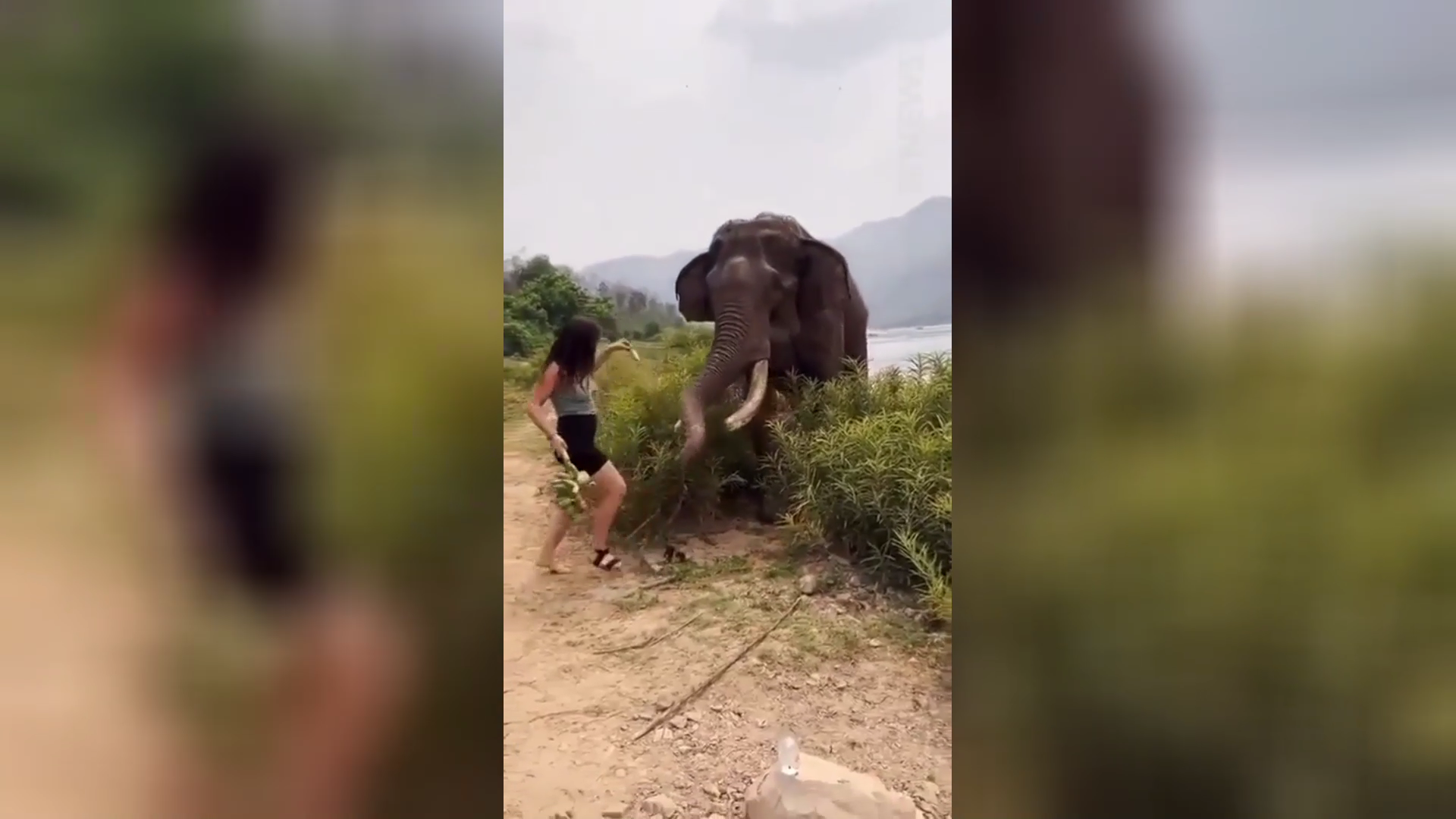 تداولت شبكات التواصل الاجتماعي فيديو يقال إنه من الهند أظهر رد فعل فيل على امرأة كانت تثير شهيته وتستفزه بموزة.