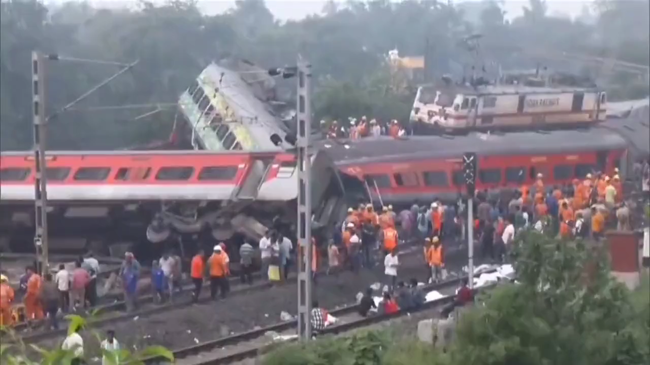 نشرت وكالة "رابتلي" لقطات من موقع الاصطدام الكارثي لقطاري شحن وركاب شرق الهند والذي اقترب عدد ضحاياه من 300 شخص.