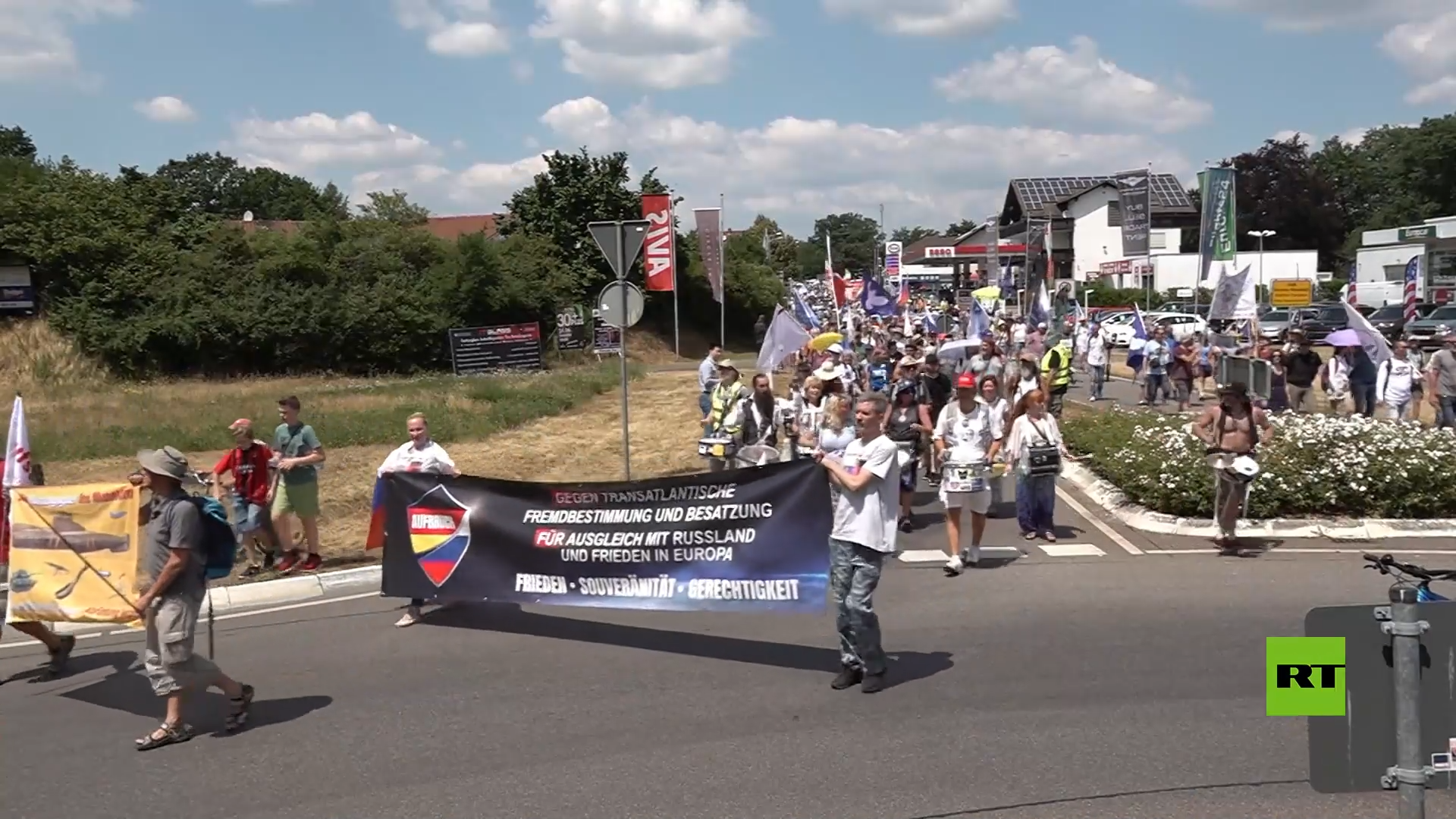 تظاهر نحو ألف شخص يوم السبت أمام قاعدة رامشتاين الجوية الأمريكية في ألمانيا احتجاجا على إمدادات الأسلحة الغربية لأوكرانيا ودعما لإجراء مفاوضات السلام الفورية.