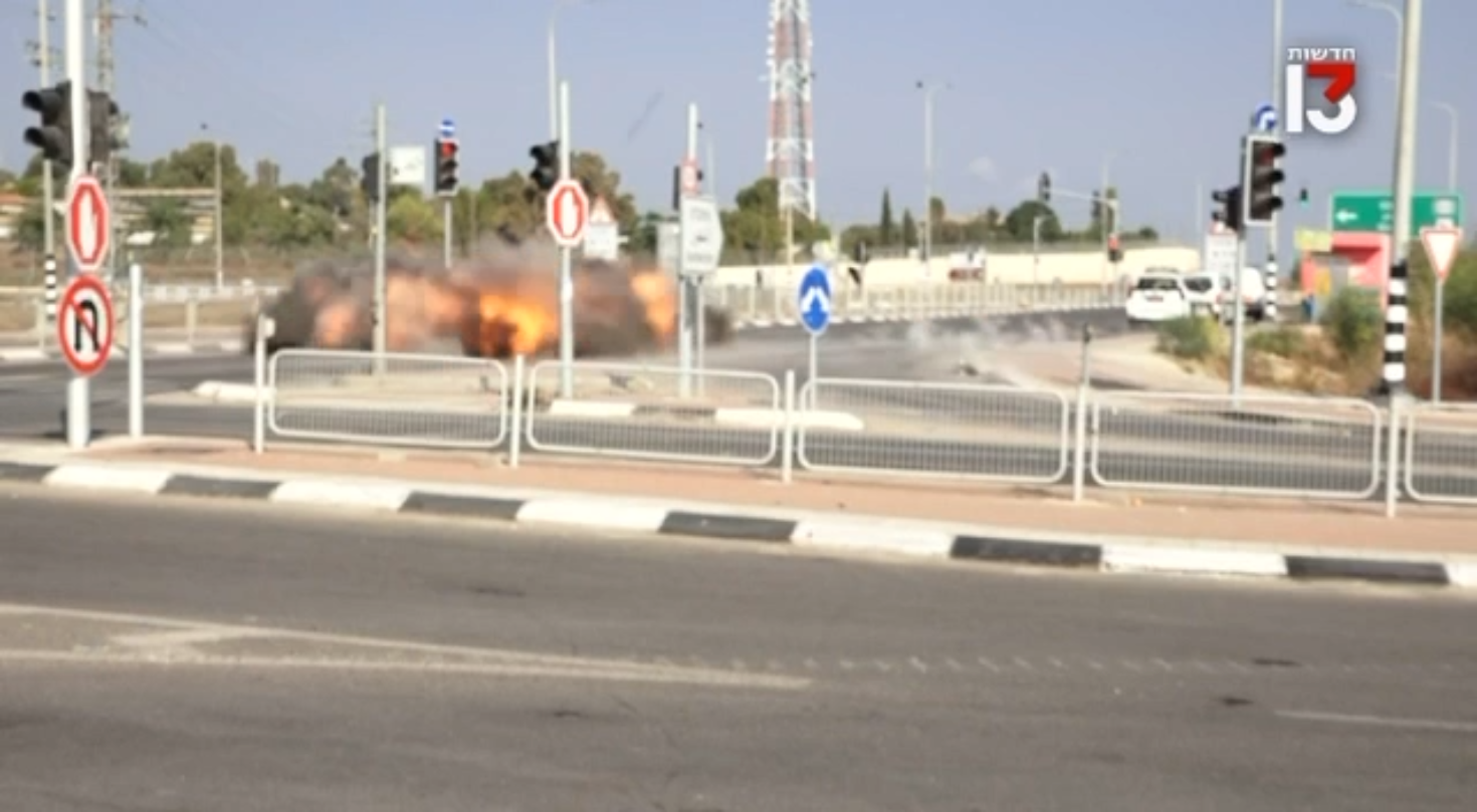 بث التلفزيون الإسرائيلي لحظة سقوط صاروخ أطلق من غزة على مستوطنة سديروت صباح اليوم السبت.