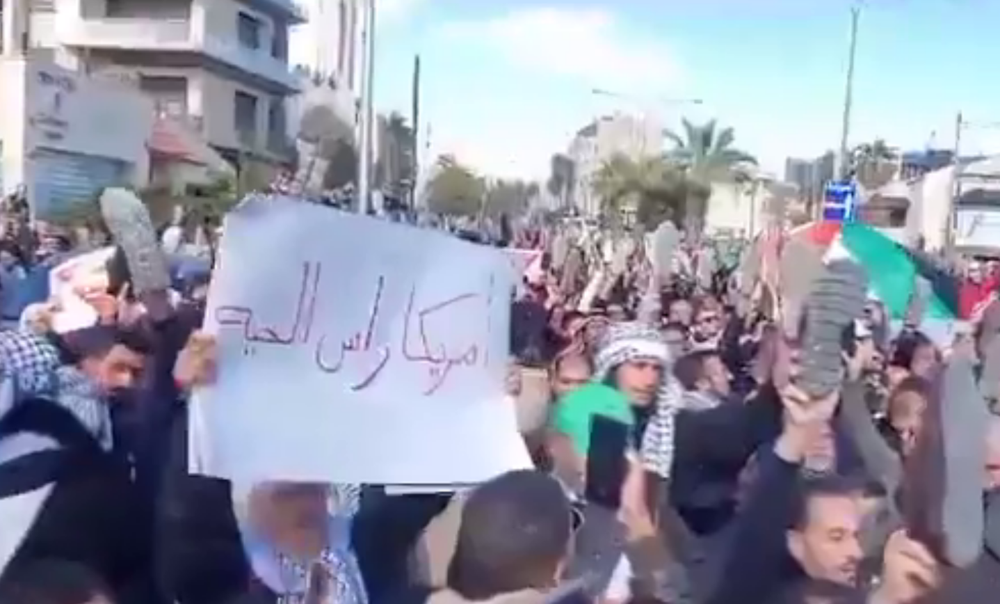 برفع الأحذية أمام السفارة الأمريكية.. أردنيون ينددون بدعم واشنطن لإسرائيل