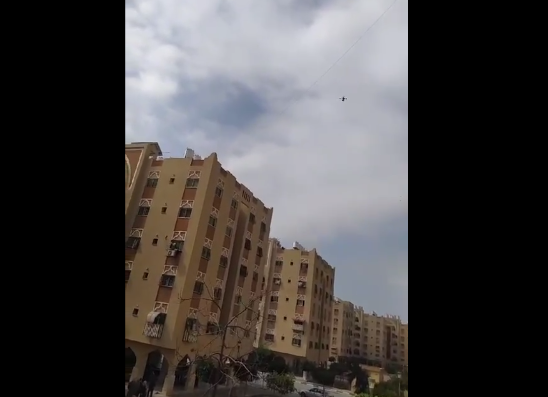 أظهر مقطع فيديو طائرات "كواد كابتر" مسيرة إسرائيلية وهي تحذر سكان "مدينة حمد السكنية" في خان يونس، وسط قطاع غزة.