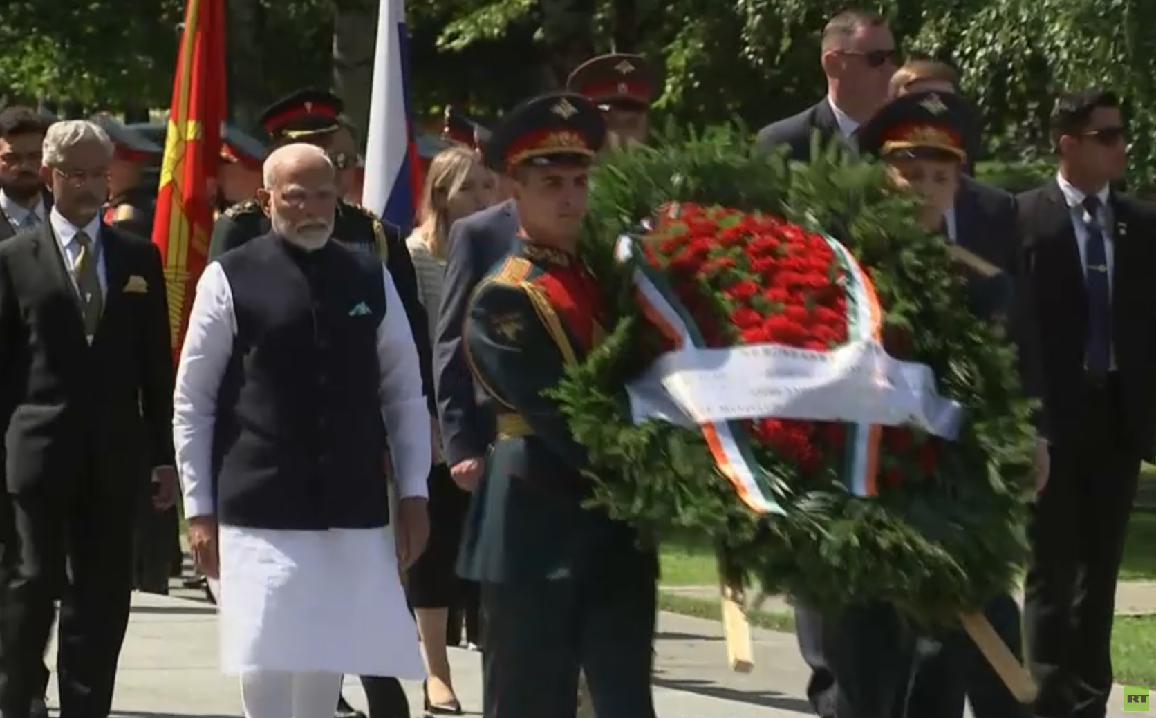في إطار زيارته إلى روسيا وضع رئيس الوزراء الهندي ناريندرا مودي إكليلا من الورود على ضريح الجندي المجهول أمام الكرملين في العاصمة الروسية موسكو.