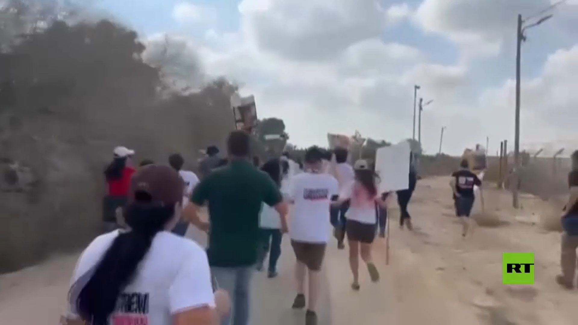 مشاهد جديدة لذوي الأسرى الإسرائيليين يخترقون السياج الحدودي مع قطاع غزة
