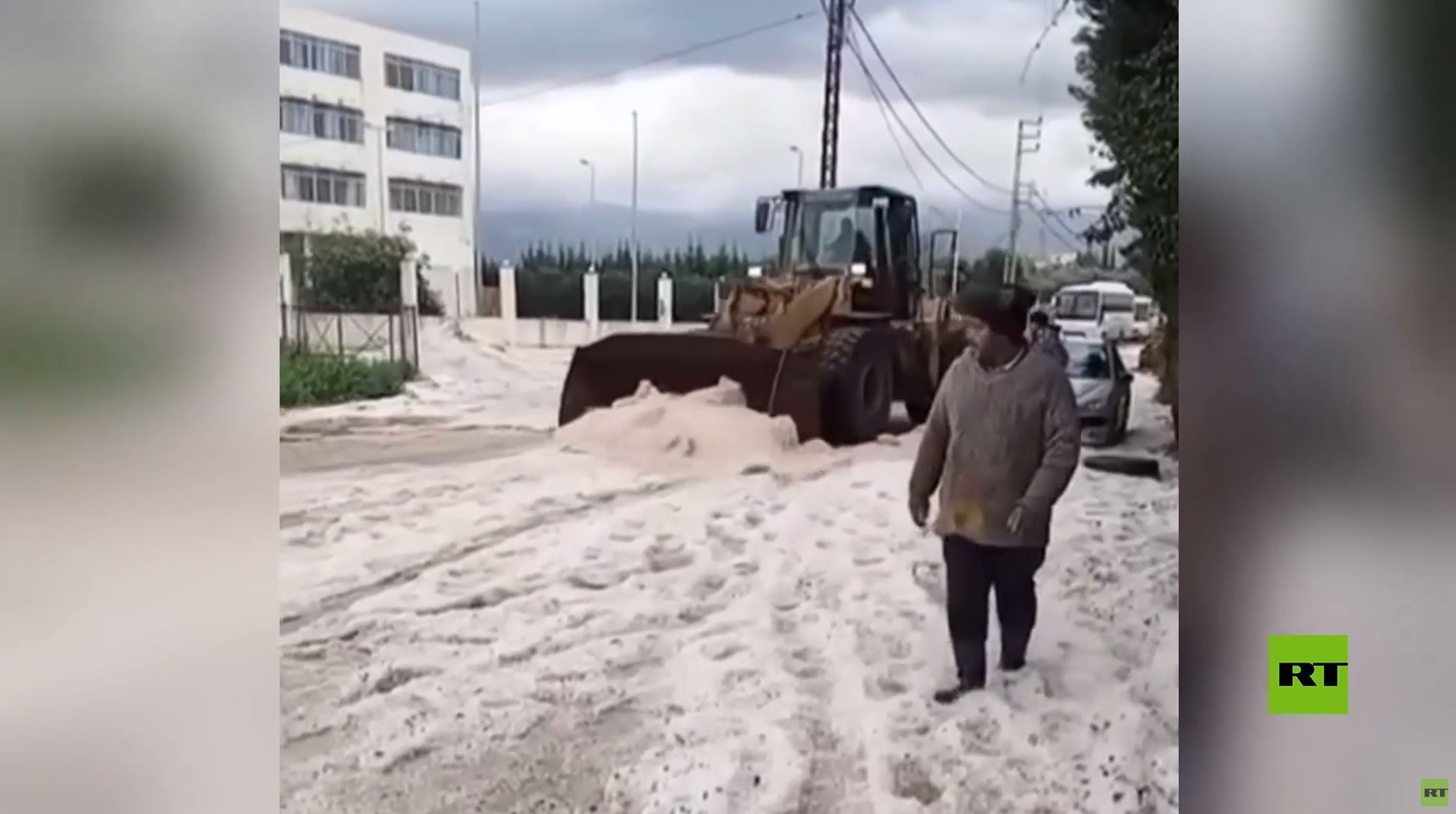 ثلوج "آدم" تغطي الشوارع اللبنانية