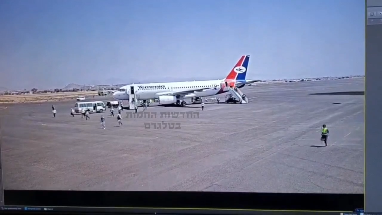 نشرت وسائل إعلامية إسرائيلية مقطع فيديو يظهر ركاب وهم يركضون على مدرج مطار صنعاء، قبل لحظات من قصف المقاتلات الإسرائيلية للمطار أمس.
