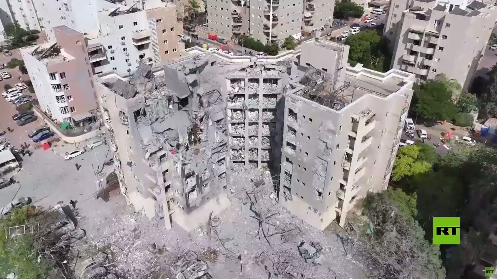 تظهر المشاهد الجوية المتداولة المباني التي استهدفتها الصواريخ الإيرانية، والتي دمرت أجزاء كبيرة منها في بئر السبع، الواقعة جنوبي إسرائيل.