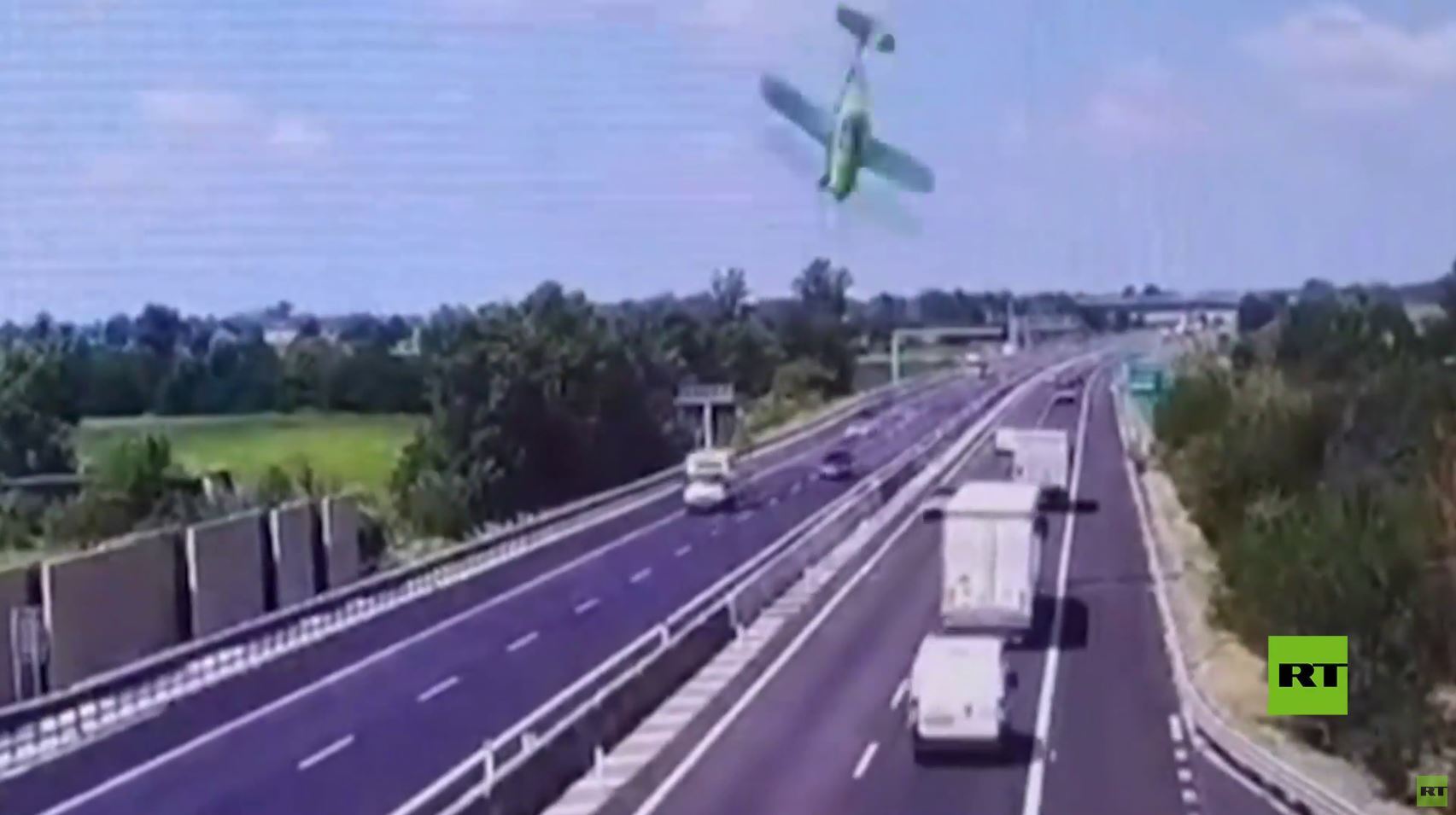 سقوط طائرة صغيرة شاقوليا على طريق سريع بإيطاليا ومصرع راكبيها