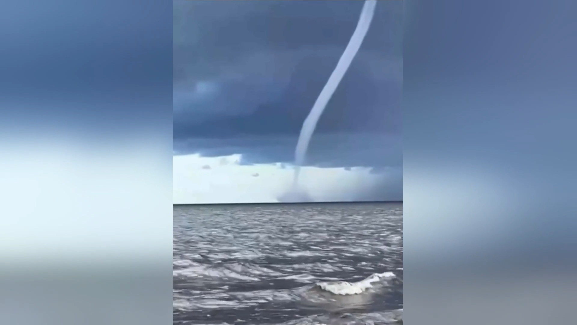 رصد شهود عيان 3 موجات من الأعاصير المائية تضرب شواطئ بحيرة لادوغا في مقاطعة لينينغراد الروسية اليوم الثلاثاء.