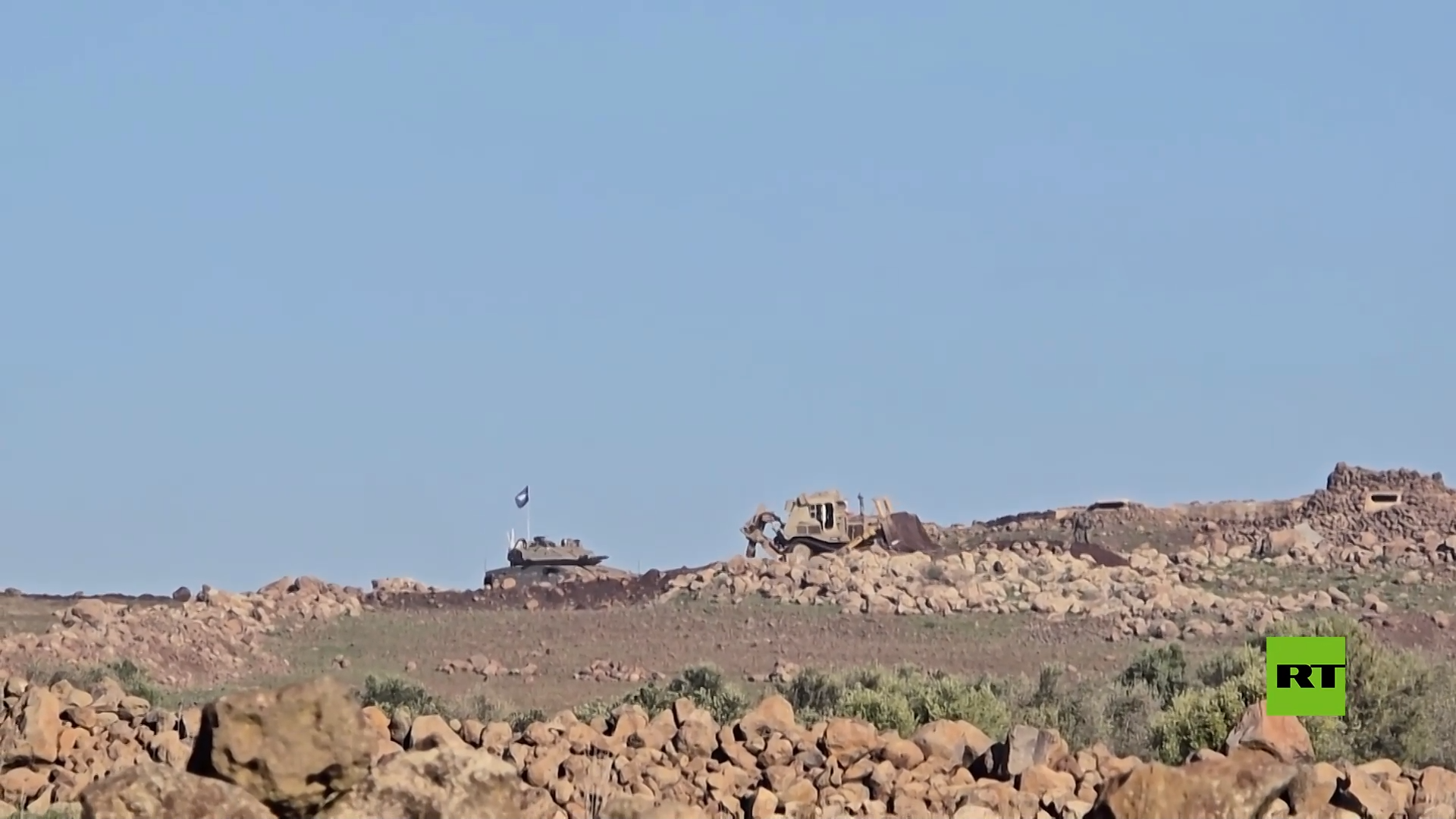 أظهرت لقطات سجلت اليوم الخميس دبابات وجرافات تابعة للجيش الإسرائيلي وهي تسير على أحد التلال وتجري عمليات تجريف في قرية المعلقة جنوب محافظة القنيطرة، جنوبي سوريا.