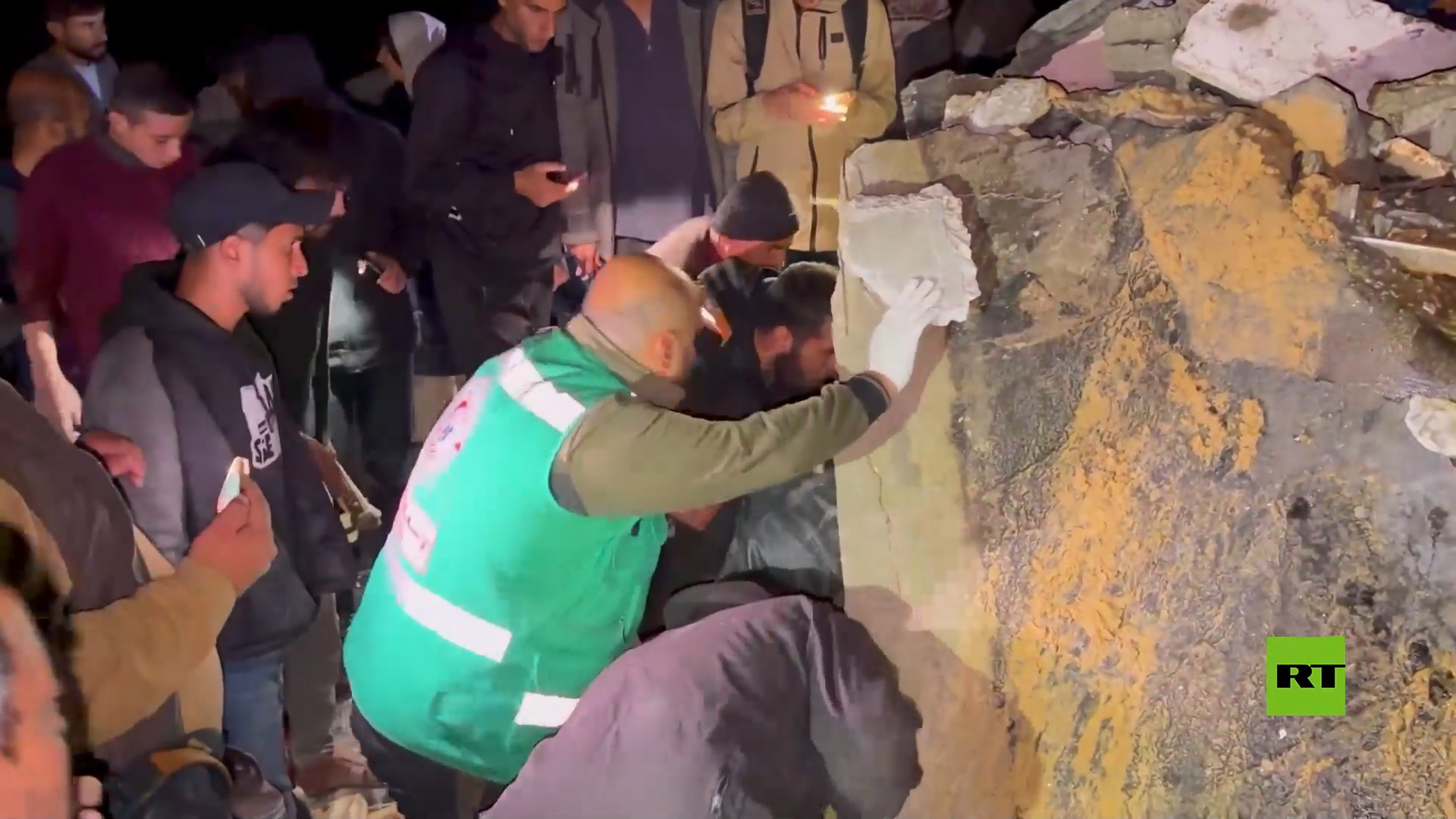 مشاهد لانتشال مصابين وقتلى من تحت أنقاض منزل انهار غزة