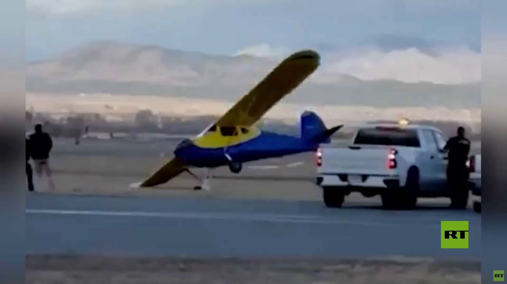 الولايات المتحدة.. رياح عاتية تقلب طائرة صغيرة في مدينة هيلينا