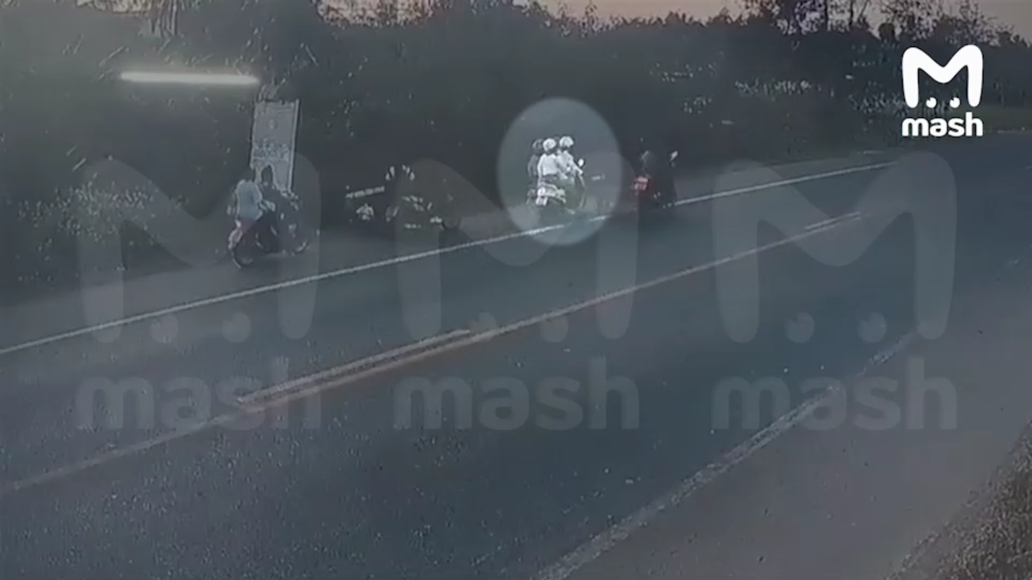وتوثق لقطات من كاميرات المراقبة لحظة قوع الحادث حيث تجاوز الرجل الروسي دينيس، كان يقود دراجة نارية برفقة صديقته ليودميلا، دراجة نارية أخرى كانت تسير ببطء، فاصطدما بها عن طريق الخطأ، وسقطا، مما أدى إلى انحراف الدراجة إلى المسار المقابل حيث صدمتها شاحنة صغيرة. وأدى الحادث إلى مصرع سائق الدراجة النارية على الفور.