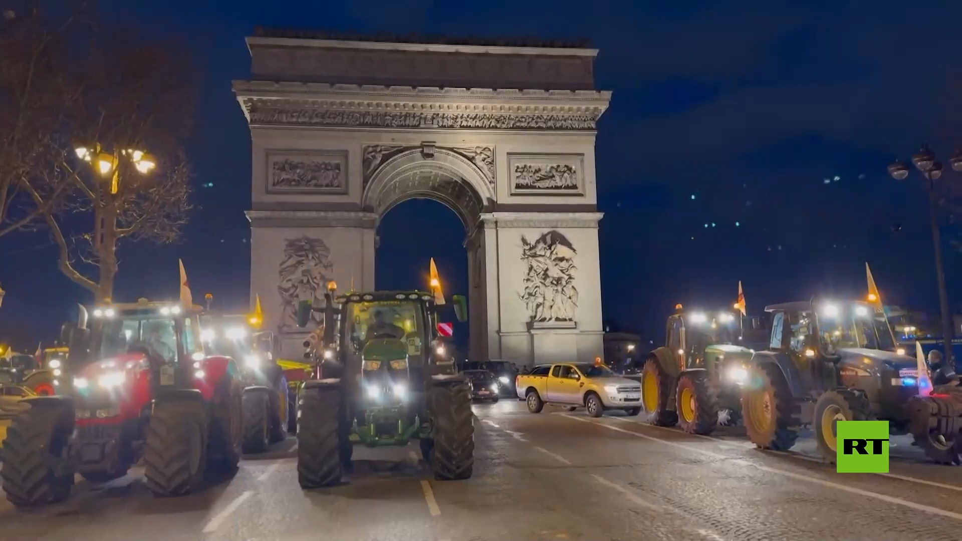 مزارعون فرنسيون يركنون جراراتهم أمام قوس النصر وسط باريس