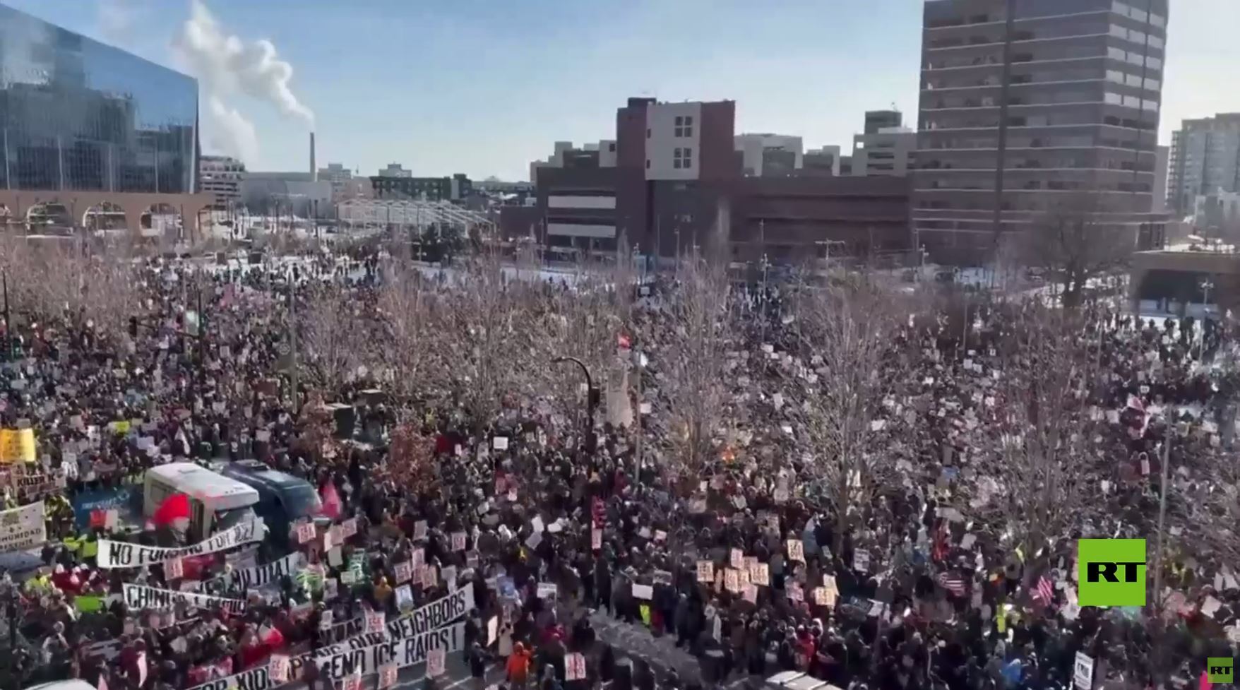 خرج عشرات الآلاف إلى شوارع مدينة مينيابوليس تحت شعار "أوقفوا إدارة الهجرة والجمارك"، حيث عبر المحتجون عن رفضهم للمداهمات العنيفة التي تنفذها إدارة الهجرة والجمارك الفيدرالية.