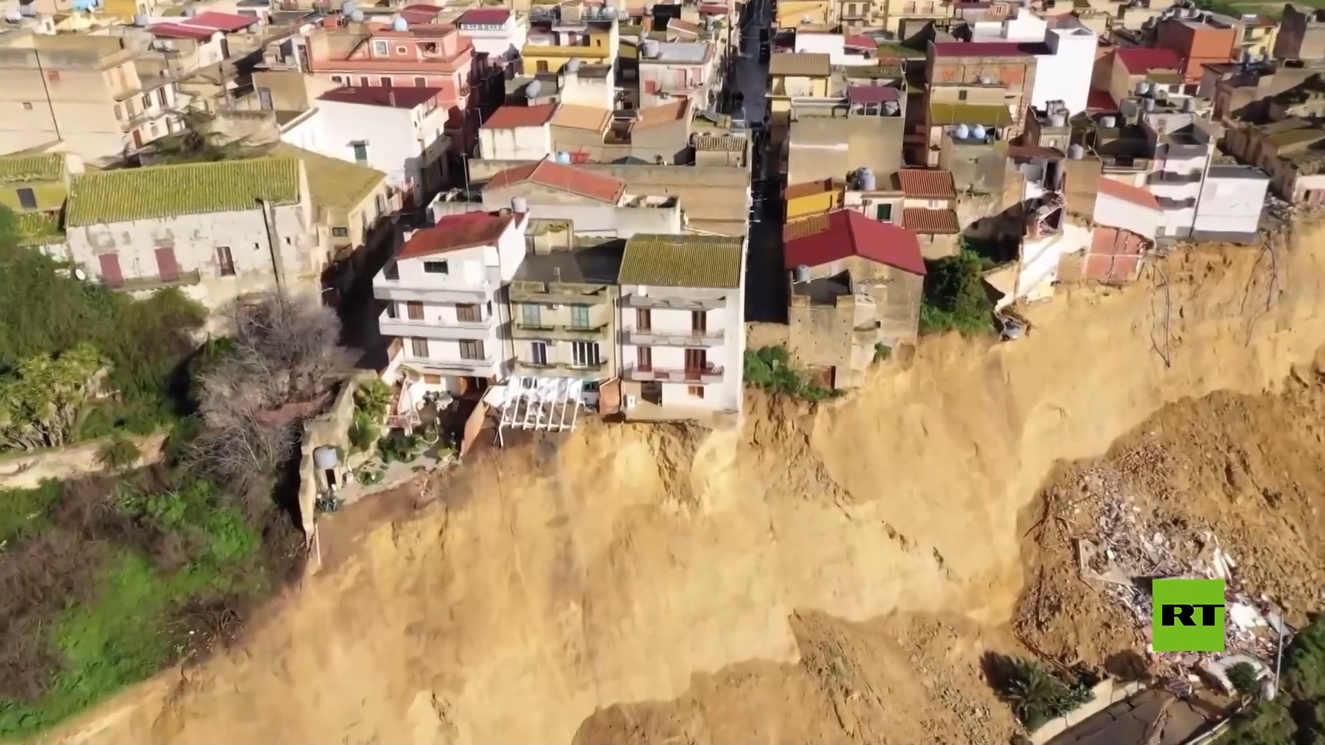 شاهد.. انهيار أرضي ضخم يدمر مدينة في جزيرة صقلية