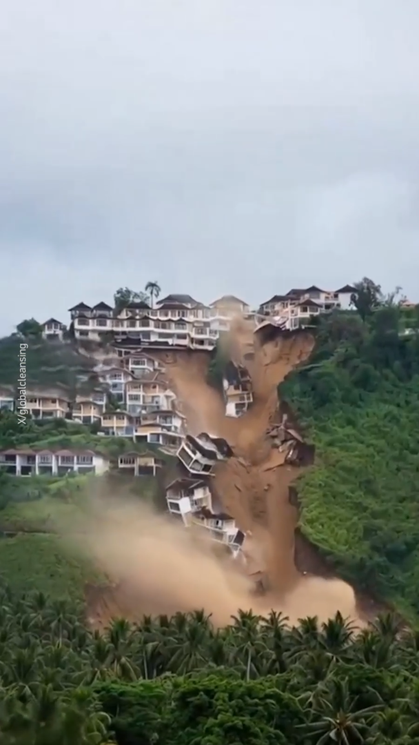 وتسبب الانهيار الأرضي بانزلاق منازل وطرق وأحياء على المنحدر، كما تهاوت مئات المباني السكنية على حافة الانهيار. وأفادت وسائل الإعلام المحلية بإجلاء 1500 شخص، كما أعلنت السلطات الإقليمية أن جميع المباني الواقعة ضمن نطاق 150 مترا من الهاوية معرضة للخطر.