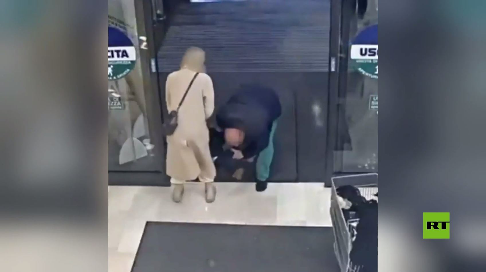 تعرضت طفلة بعمر 18 شهرا لكسر في عظمة الفخذ بعد محاولة رجل 47 عاما خطفها وهي برفقة والدتها أمام مدخل سوبرماركت بمدينة بيرغامو الإيطالية ووثقت كاميرا المراقبة الحادثة.
