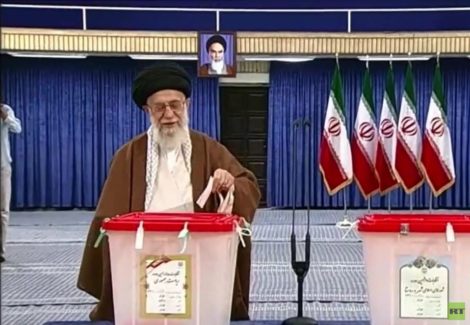 بالفيديو.. خامنئي يدلي بصوته في الانتخابات الرئاسية داخل حسينية الخميني