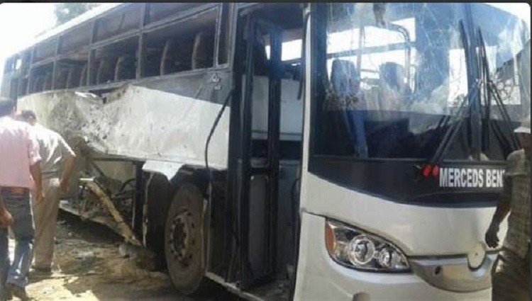 اللقطات الأولى من مكان الهجوم على حافلة الأقباط في المنيا