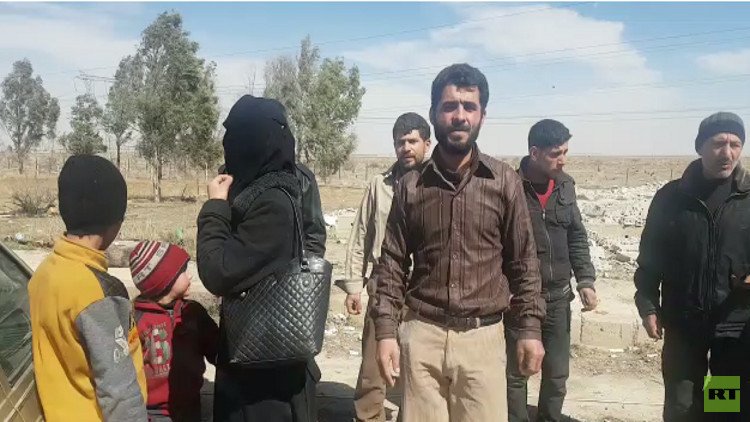 وثقت الكاميرا خروج مجموعة من المدنيين من مدينة عربين في غوطة دمشق الشرقية، بعد أن علموا بفتح ممر إنساني للخروج من منطقة المواجهات العسكرية بين الجيش السوري والمجموعات المسلحة.