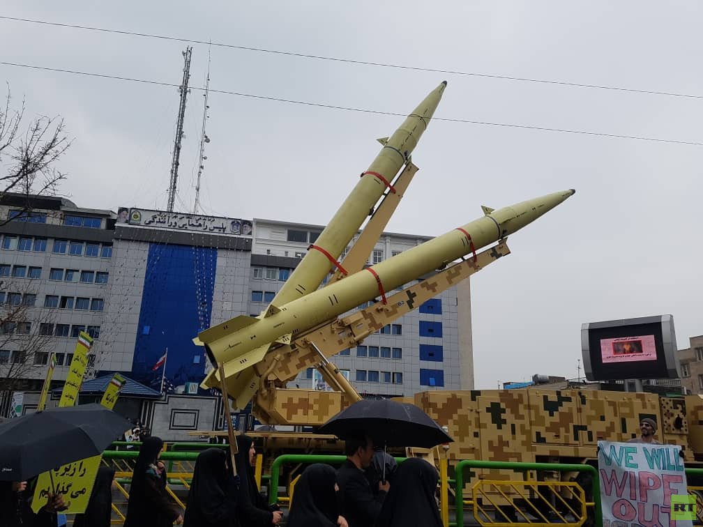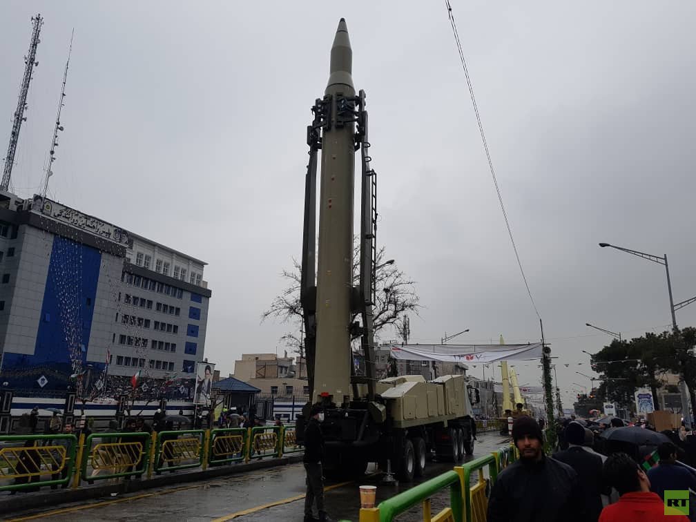 عرض الحرس الثوري الإيراني صواريخ باليستية، اليوم الاثنين، بمناسبة الاحتفالات بمرور 40 عاما على الثورة الإسلامية في إيران.