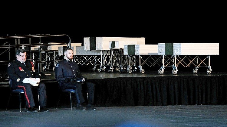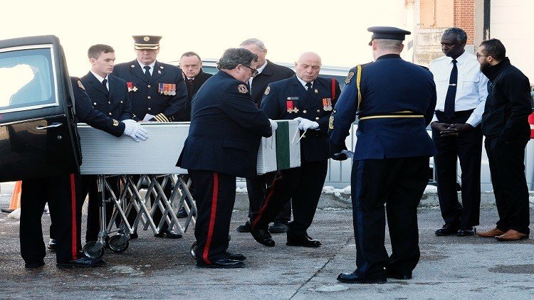 وقد رافق التوابيت السبعة الصغيرة البيضاء حرس الشرف الكندي قبل نقلها إلى مقبرة المسلمين بالقرب من هاليفاكس.