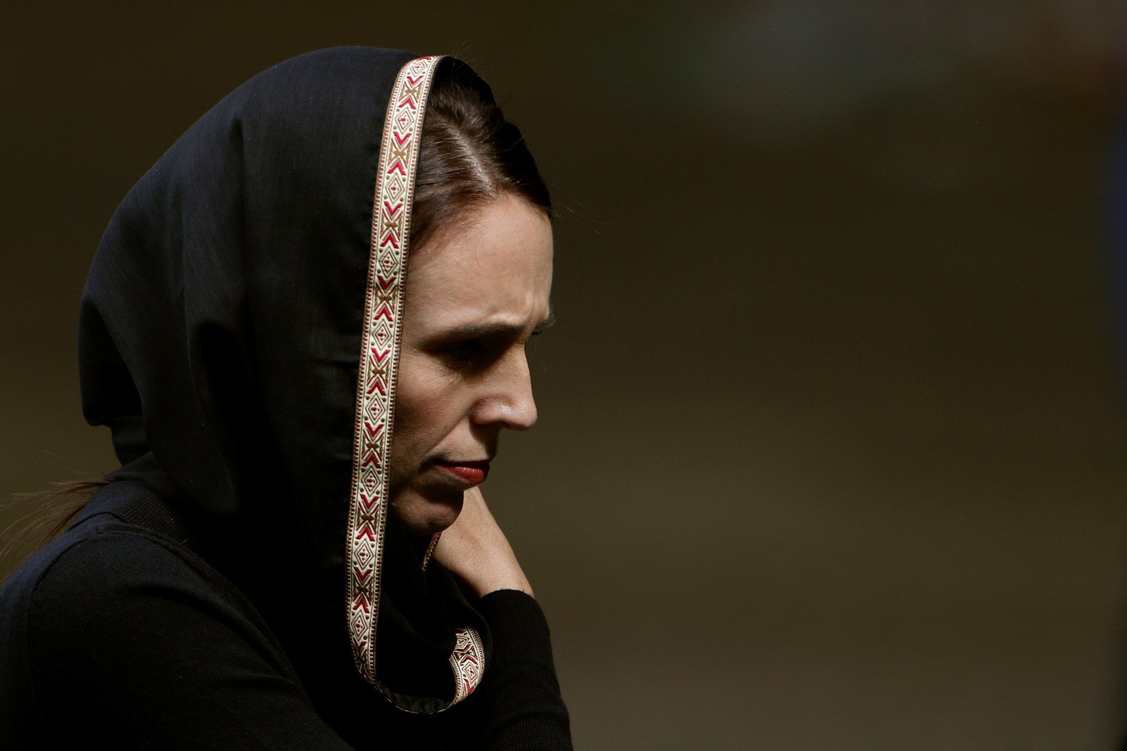 وارتدت جاسيندا ثوبا أسود وحجابا، وأبدت تعاطفها مع الجالية المسلمة قائلة "إن نيوزيلندا تنعى معكم".