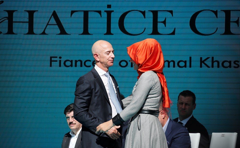 وضع نصب تذكاري لخاشقجي أمام القنصلية السعودية باسطنبول بحضور الملياردير بيزوس (صور)