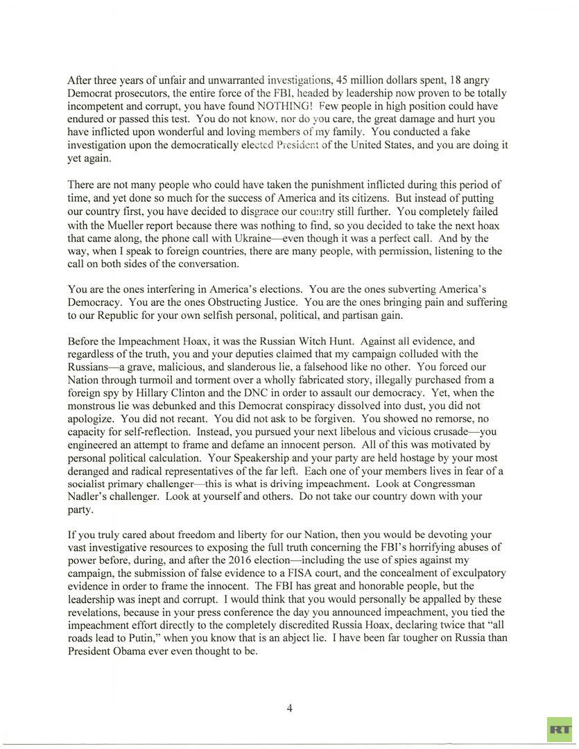 President @realDonaldTrump has sent a letter about the partisan impeachment crusade to Speaker Pelosi. Read it here: https://t.co/V5KWGiX1au
