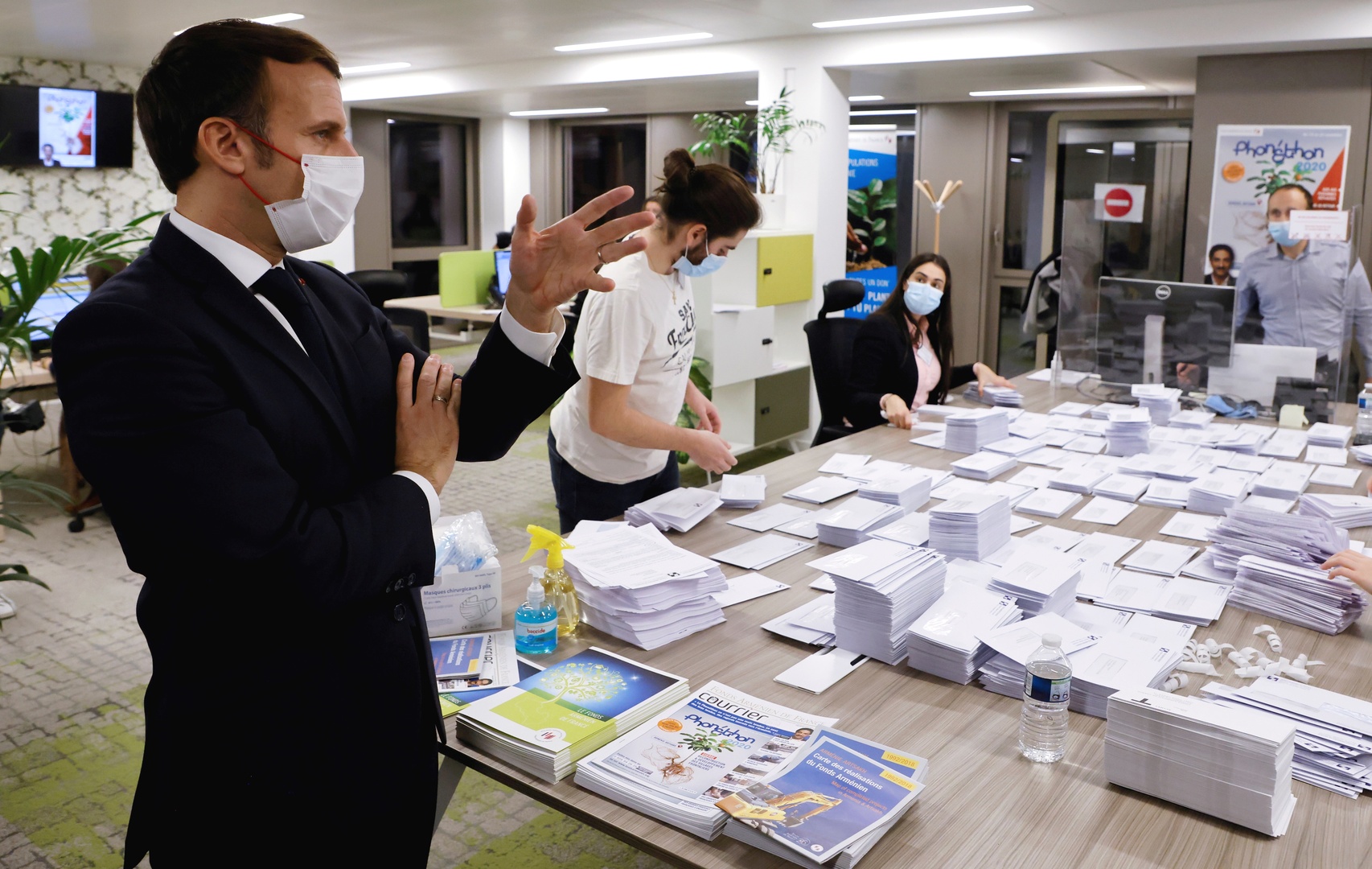 عبر الرئيس الفرنسي إيمانويل ماكرون عن دعمه للأرمن بزيارته مقر "فونيتون" بباريس الذي يجمع التبرعات ويقدم خدمات إسناد للأرمن بشكل عام وللنازحين من إقليم قره باغ بسبب الحرب بشكل خاص.
