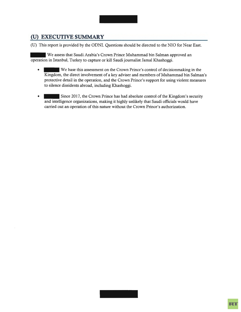 وقال تقرير للمخابرات الأمريكية نزعت عنه السرية وصدر يوم الجمعة إن ولي العهد السعودي الأمير محمد بن سلمان وافق على عملية للقبض على خاشقجي أو قتله.
