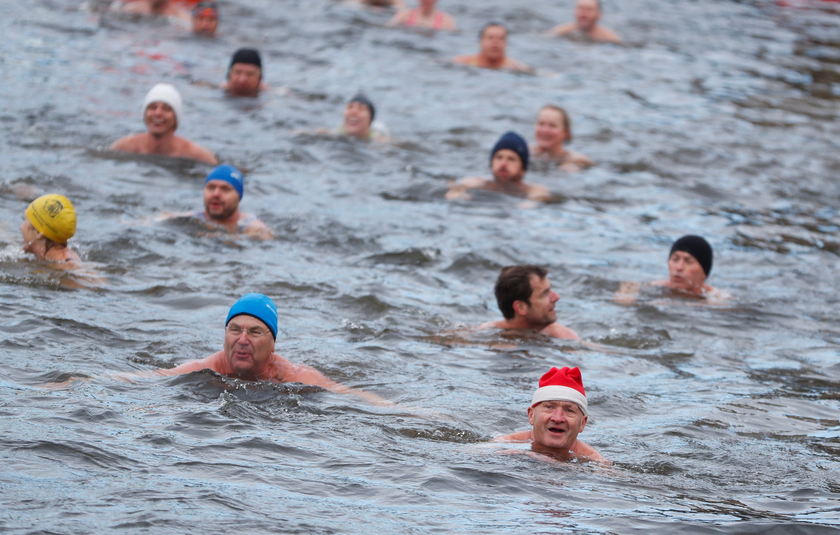 رغم الإجراءات الصارمة.. عشرات الأشخاص يسبحون في مياه باردة احتفالا بأعياد الميلاد في التشيك (صور)