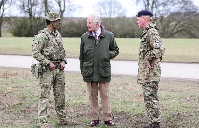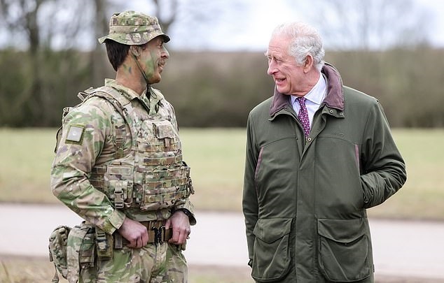 والتقطت صور للملك 74 عاما، وهو يصافح الجنود الذين يكملون أسبوعهم الخامس من التدريب القتالي الأساسي، على يد القوات البريطانية والدولية الشريكة، وتبادل الملك الابتسامات مع الجنود الذين سيعودون للقتال في أوكرانيا بمجرد انتهاء تدريبهم.