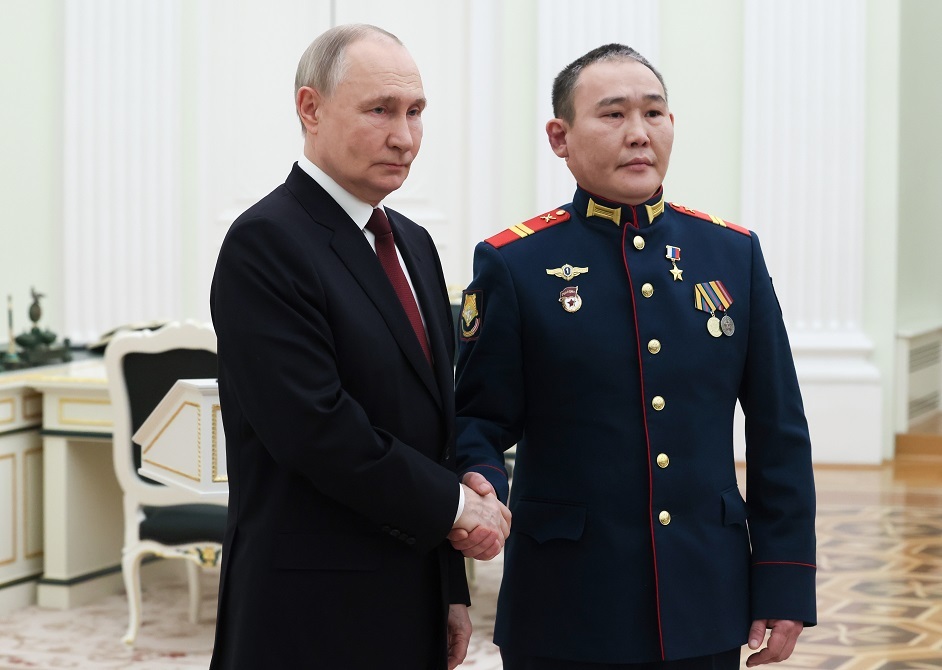 قلد الرئيس الروسي فلاديمير بوتين وسام "النجمة الذهبية" لبطل روسيا العريف أندريه غريغورييف الذي تغلب على جندي من القوات المسلحة الأوكرانية في قتال بالسلاح الأبيض.