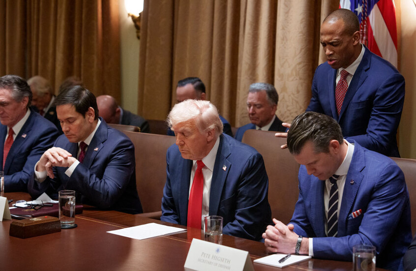 "نشكر الله على ترامب".. صلاة في جلسة الحكومة الأمريكية الأولى (فيديو)