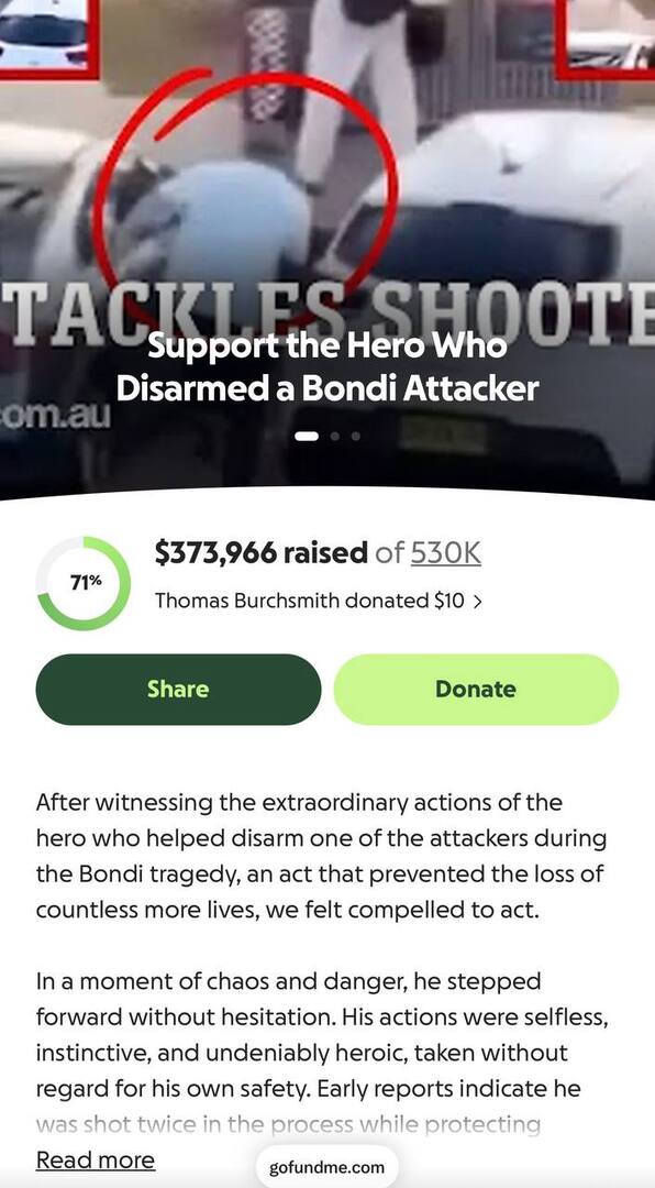 وأفادت مراسلتنا بأنه تم إنشاء حساب GoFundMe موثق لأحمد الأحمد وهو أب لطفلين يبلغ من العمر 43 عاما، وقد تم نقله إلى المستشفى مصابا بجروح بعدما تصدى لمهاجم شاطئ بوندي وانتزع سلاحه، ولكن من المتوقع أن يتعافى.
